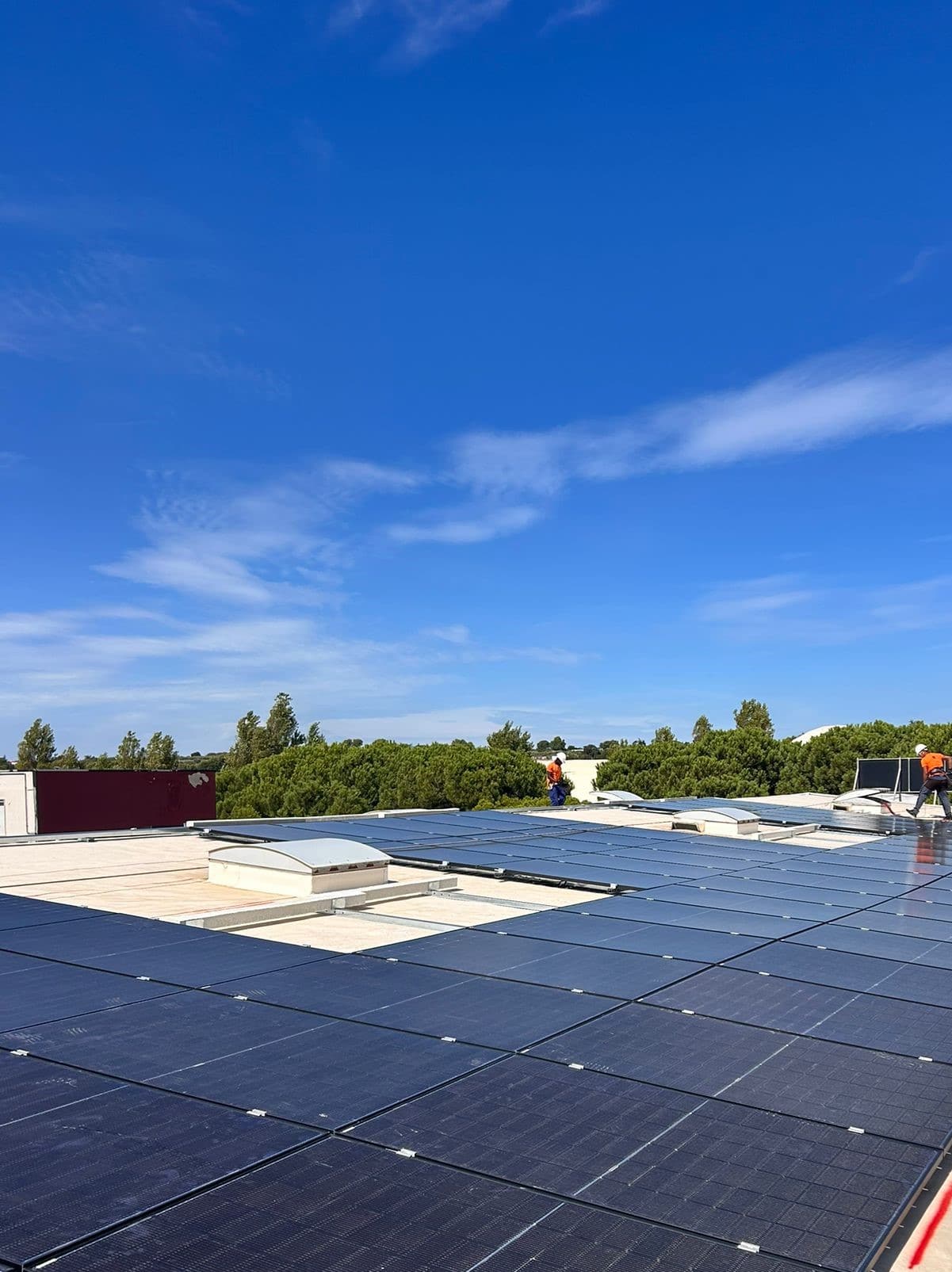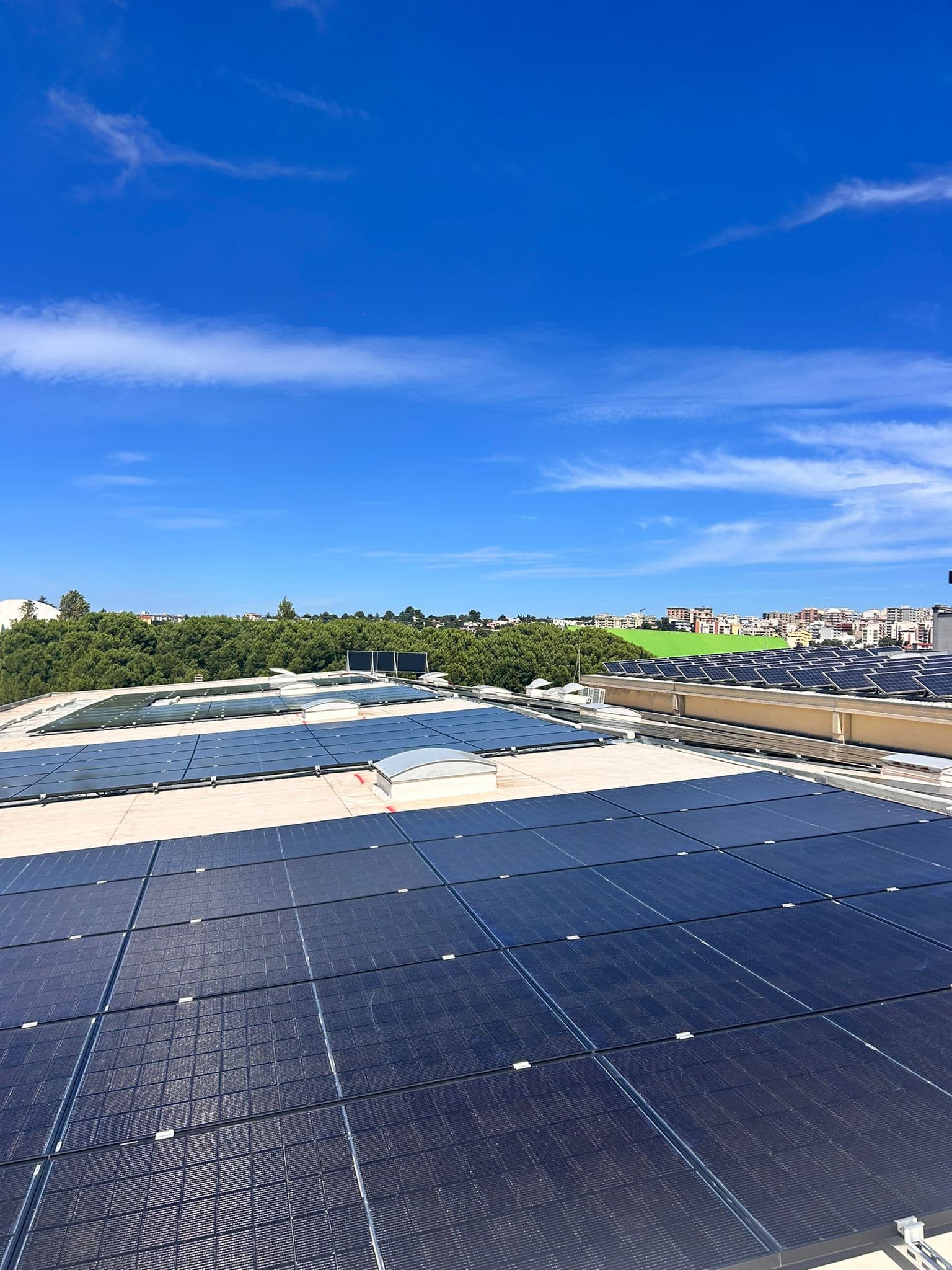 Impianto industriale realizzato su capannone di un’azienda manifatturiera di Putignano. I moduli sono stati installati in maniera complanare, fissati alle balaustre perimetrali e contemporaneamente zavorrati mediante travertini in cemento. Il tutto per preservare la guaina protettiva della copertura.